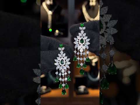 مجموعة إكسسوارات سلسلة الزفاف الطويلة الخضراء من آزاده، مصنوعة من حجر الزركون عالي الجودة ومطلية بالروديوم