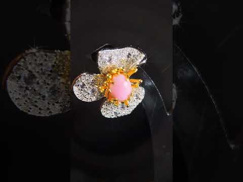 - زخارف نباتية من المرجان الوردي مزينة بألماس صناعي لامع