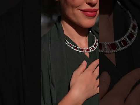 تميزي بإطلالة أنيقة وجذابة مع قلادة أمنية أليساندرا الحمراء، المصنوعة من فضة 925 والمزينة بحجر ألماس محاكي عالي الجودة بقصّة الزمرد بلون أحمر آسر. هذه القطعة الفريدة تناسب العروس الفخمة، والمناسبات الراقية، والسهرات المميزة، حيث تضيف لمسة من الأناقة الملكية إلى إطلالتكِ.