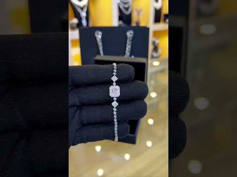 - سوار تنس متوهج باللون الوردي من الفضة عيار 92.5 عالي الجودة