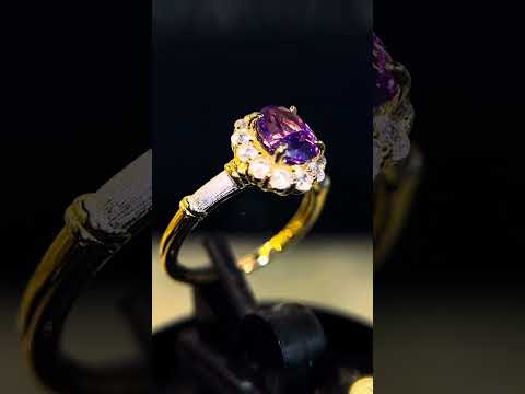 - التصميم: تصميم أنيق مستوحى من الزهور مزين بأحجار أرجوانية لامعة مصنوعة في المختبر