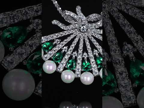 - اللون: أحجار خضراء زاهية ممزوجة بأناقة اللؤلؤ الأبيض الكلاسيكية
