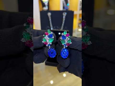 أقراط Omnia Bloom المتدلية بتصميم أوراق متعددة الألوان وألماس محاكى من الفضة عيار 92.5