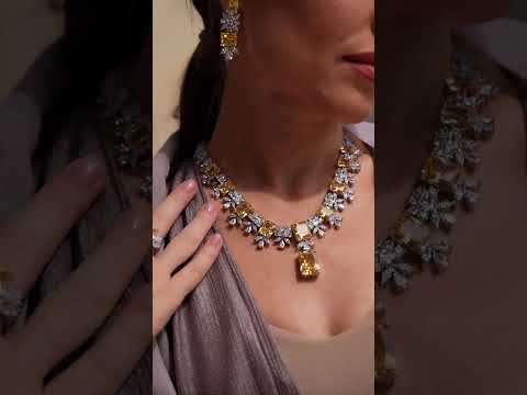 - مجموعة عرائس صفراء كاملة مع ألماس محاكاة عالي الجودة، مطلي بالروديوم