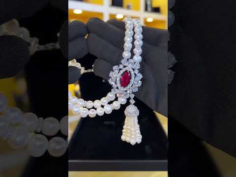❤️ طقم اللؤلؤ العرائسي أمنية داليا – فضة 925 مع حجر ياقوتي وأحجار مقلدة عالية الجودة ❤️