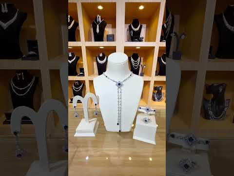 مجموعةأمنية دنيا الزرقاء الطويلة المصنوعة من حجر الزركون عالي الجودة والمطلية بالروديوم