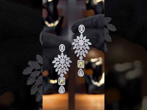 مجموعة السلسلة الطويلة اللامعة والأنيقة مصنوعة من أحجار الزركون البيضاء والصفراء عالية الجودة المطلية بالروديوم.
