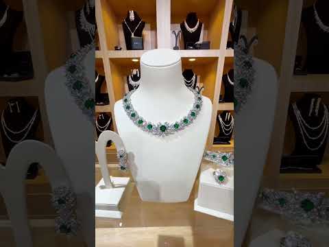 طقم زفاف كامل من  امنيه نارين جرين مرصع بأحجار الزركون عالية الجودة ومطلي بالروديوم