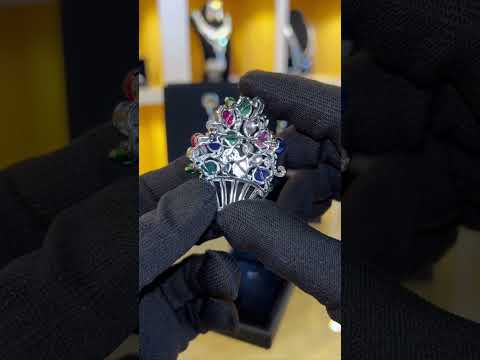 دبوس سلة زهور أمنية من الفضة عيار 92.5 مع أحجار متعددة الألوان من الزركون عالي الجودة و الألماس المحاكي