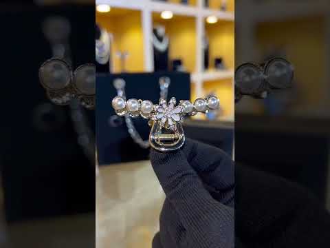 مشبك شعر ذهبي فاتح بتصميم زهرة اللؤلؤ من أمنية غزالة، مرصع بحجر الزركون عالي الجودة ومطلي بالروديوم