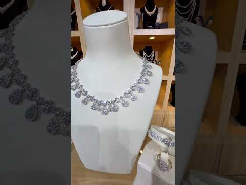 طقم زفاف كامل من أمنية هانا باللون الأبيض من الفضة عيار 925 مرصع بالألماس الاصطناعي عالي الجودة