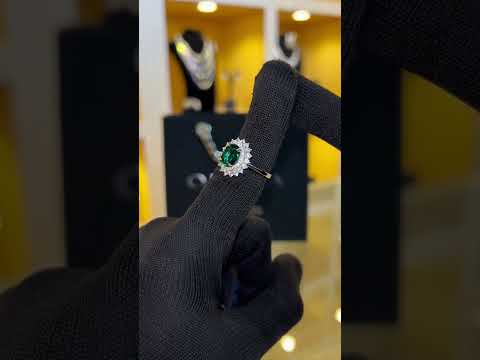 خاتم أمنية حوراء الأخضر 92.5 فضة معتمد بحجر زمرد عالي الجودة مزروع في المختبر