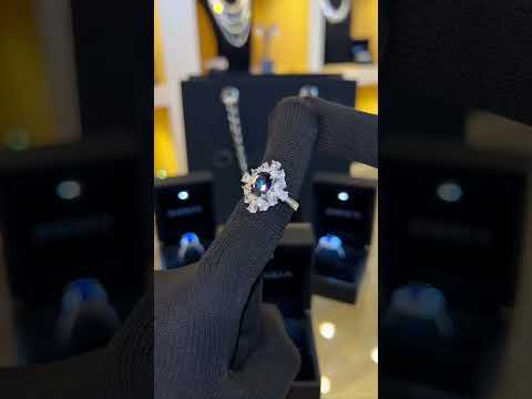 خاتم أمنية هبة أزرق 92.5 فضة معتمد بحجر ياقوت أزرق عالي الجودة مزروع في المختبر