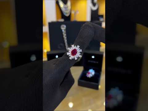 خاتم أمنية جميلة أحمر عيار 92.5 فضة معتمد من حجر الياقوت عالي الجودة المزروع في المختبر