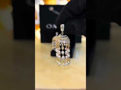 أقراط الثريا اللؤلؤية من أمنية ياسمين مع أحجار الزركون عالية الجودة بلمسة نهائية مطلية بالذهب