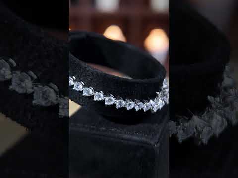سوار التنس أومنيا كايرا ذو القلب، بقياس 2.5 مم، مثالي لحفلات الزفاف، والمناسبات الاحتفالية، والأناقة العصرية، كما أنه هدية رائعة. يتناغم بسهولة مع المجوهرات الأخرى، والفساتين، والعباءات، والأزياء الحديثة. يُعدّ أيضاً هدية فاخرة ومميزة لأعياد الميلاد، والذكرى السنوية، والمناسبات الخاصة.