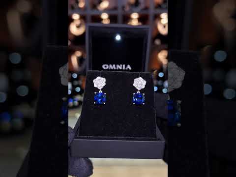 أقراط أومنيا خانسا الفضية المتدلية بتصميم وردة مصنوعة من الفضة عيار 925 ومرصعة بأحجار الياقوت الأزرق عالية الجودة والمعتمدة من GRC والمصنّعة مخبرياً