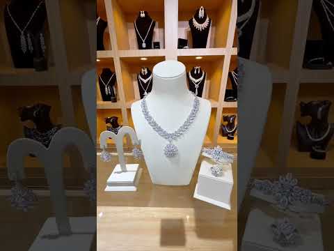 طقم زفاف أمنية لارين الأبيض الكامل بحجر الزركون عالي الجودة مطلي بالروديوم