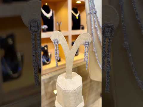 تتميز المجموعة الكاملة ذات السلسلة الطويلة البيضاء اللامعة بأحجار الزركون البيضاء عالية الجودة وطبقة نهائية مطلية بالروديوم.