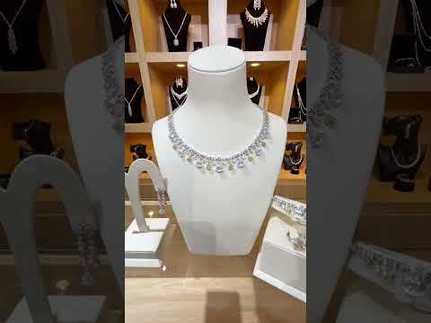 طقم زفاف أمنية مروة الأصفر الكامل بأحجار الزركون عالية الجودة المطلية بالروديوم