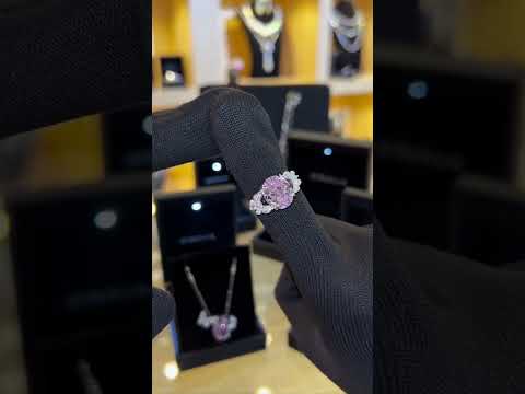 خاتم أمنية مايسون الوردي البيضاوي من الفضة عيار 92.5 مرصع بألماس محاكى عالي الجودة