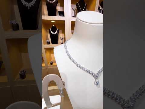 طقم زفاف أمنية نعيمة الأبيض الكامل من الفضة عيار 92.5 مرصع بالألماس المحاكى عالي الجودة