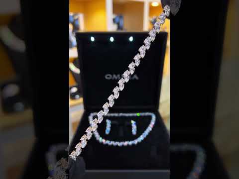 طقم مجوهرات أومنيا نعيمة الأبيض للتنس، المكون من عقد وأقراط وسوار، هو مجموعة مجوهرات فاخرة وأنيقة مصممة لتشعّ بالرقي والتألق. مصنوع من الفضة الإسترليني عيار 925 عالية الجودة، ويتميز هذا الطقم بألماس صناعي عالي الجودة مقاس 4×6 مم، مُرتب بتصميم كلاسيكي مستوحى من لعبة التنس، مما يمنحه بريقًا استثنائيًا ومظهرًا راقيًا. يُعد طقم نعيمة للتنس مثاليًا لحفلات الزفاف والمناسبات الخاصة، أو كهدية مميزة، فهو يضفي لمسة من الأناقة الخالدة على أي إطلالة.