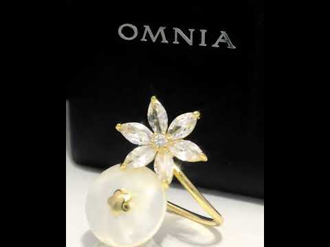 خاتم أمنية نازنين بتصميم زهرة من النحاس المطلي بالذهب مع عرق اللؤلؤ وأحجار ماركيز