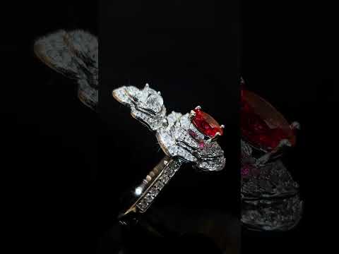 - التصميم: خاتم زهور حمراء مرصع بالألماس الصناعي