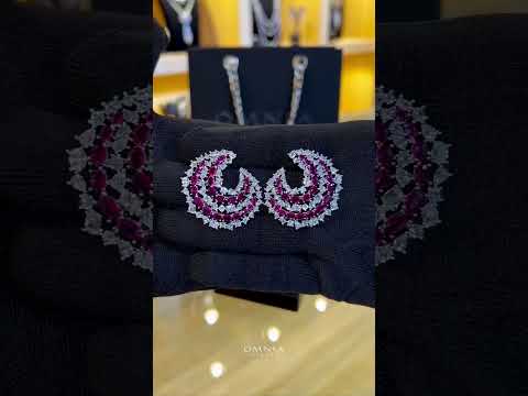 أقراط هلالية من مجموعة أمنية سالما مرصعة بالزركون الأحمر والأبيض مطلية بالروديوم عالي الجودة