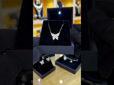 قلادة فراشة أمنية سارا بحجر مقطوع مثلج عالي الجودة ولؤلؤ من الفضة عيار 92.5