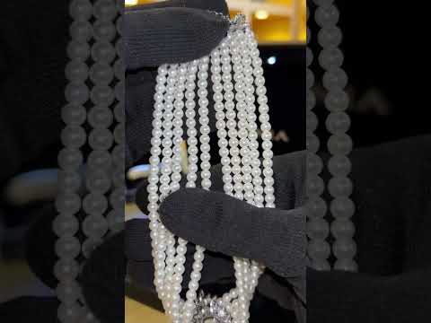 أمنية سيرافينا - طقم زفاف لؤلؤي أبيض بتصميم متعدد الطبقات مع لمسات زركونية