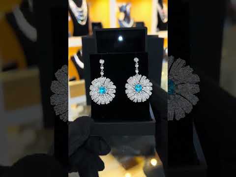 أقراط Omnia Shaden Blue Radiant Floral Drop Earrings مع أحجار الزركون عالية الجودة بلمسة نهائية مطلية بالروديوم