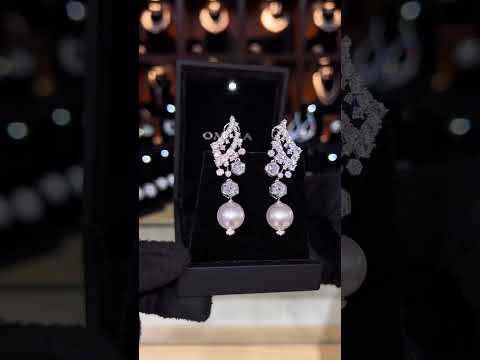 - التصميم: أقراط متدلية أنيقة مجنحة مزينة باللؤلؤ المتألق والماس