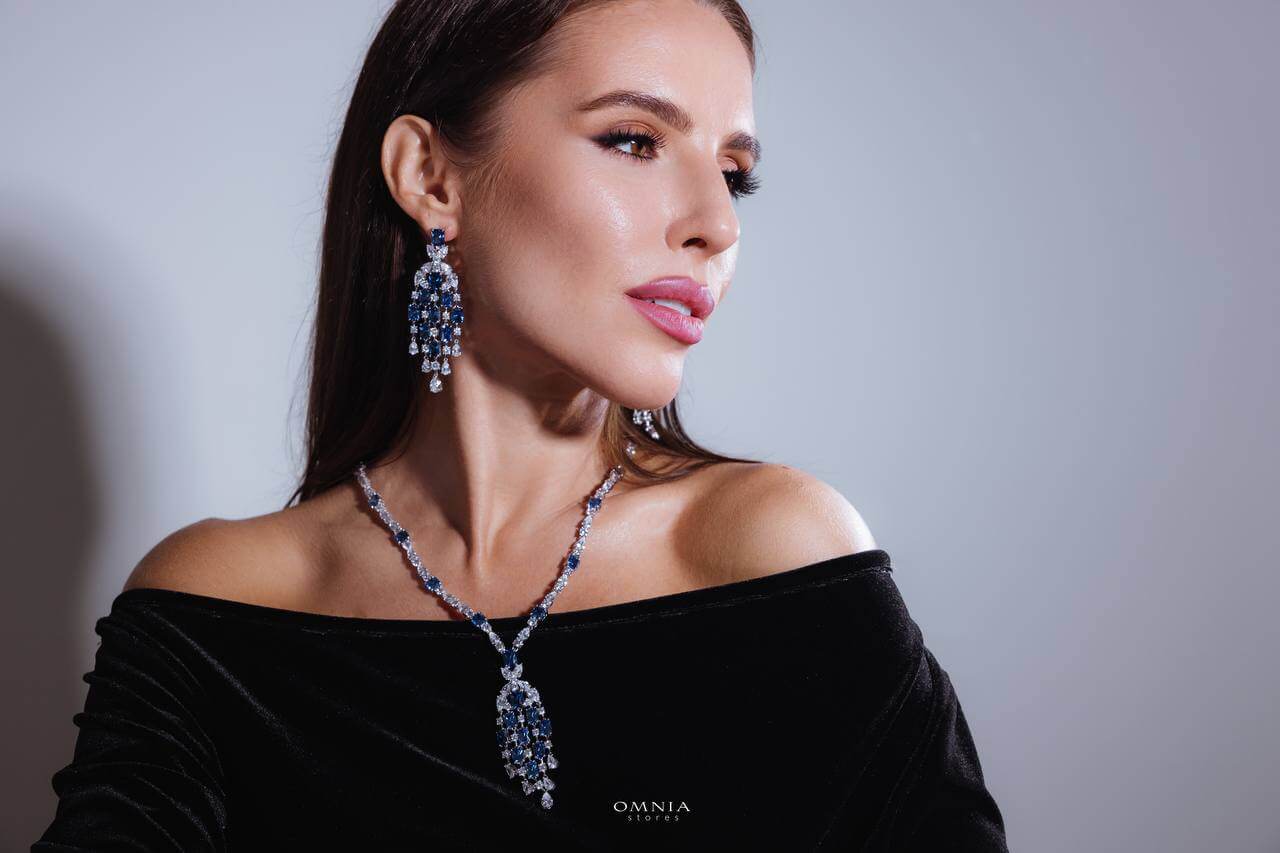 أقراط إسراء الزرقاء من أمنية مصنوعة من الفضة عيار 92.5 عالية الجودة ومرصعة بالألماس المحاكى