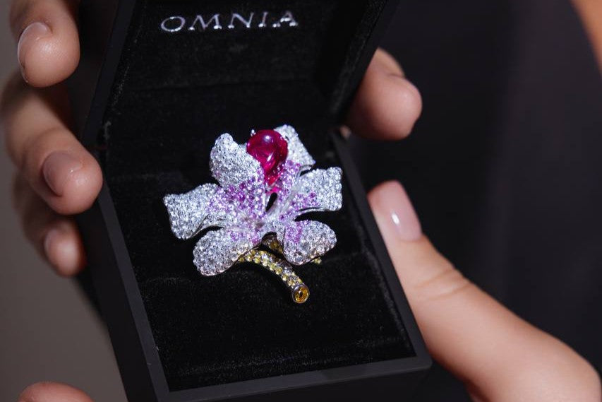 دبوس سلة زهور أمنية من الفضة عيار 92.5 مع أحجار متعددة الألوان من الزركون عالي الجودة و الألماس المحاكي