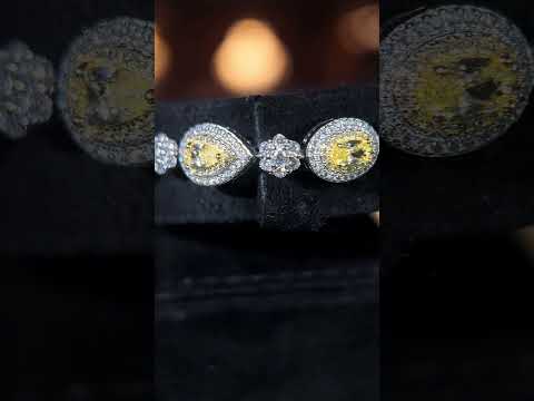 سوار أمنيا تاليها أبيض وأصفر مرصع بألماس صناعي عالي الجودة من الفضة عيار 925