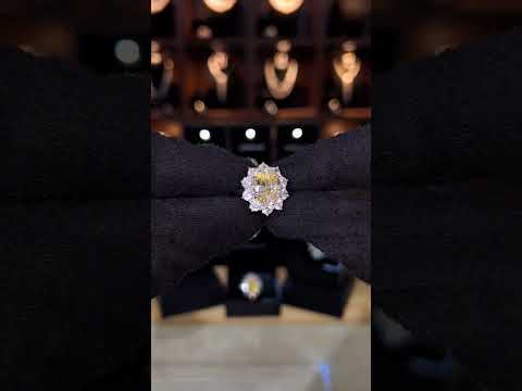 في المنتصف، تتألق ماسات صفراء صناعية عالية الجودة ، مصقولة بعناية لتعكس الضوء بجمال من كل زاوية. يضفي اللون الأصفر الدافئ سحراً فاخراً ومبهجاً، مما يجعل الخاتم مميزاً مع الحفاظ على أناقته. تعزز الماسات الصناعية الأخرى بريق الخاتم، مانحةً إياه حضوراً فخماً يشبه الماس.