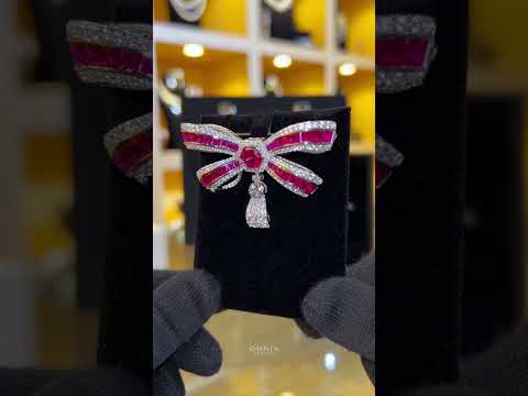 بروش أومنيا تانيا على شكل فيونكة من الفضة عيار 92.5 مرصع بألماس صناعي عالي الجودة