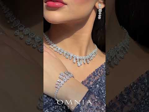 طقم إكسسوارات أومنيا تريشا الأبيض الكامل هو طقمٌ رائعٌ مُصمّمٌ للعرائس والمناسبات الخاصة. مصنوعٌ من أحجار الزركون عالية الجودة ومطليٌّ بالروديوم الفاخر ، يُشعّ هذا الطقم الفاخر بالأناقة والرقي. تصميمه الأبيض الخالد يجعله مثاليًا لحفلات الزفاف، وحفلات الاستقبال، أو أي مناسبة ترغبين فيها بالتألق.