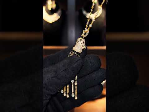 - Earrings: Matching horse-head studs with a rhythmic chain drop.