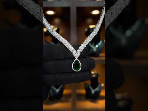 Omnia Aamira Teardrop-Design Bridal Crystal Emerald Green Full Set with High-Quality Zircon Stones in Rhodium-Plated Finish