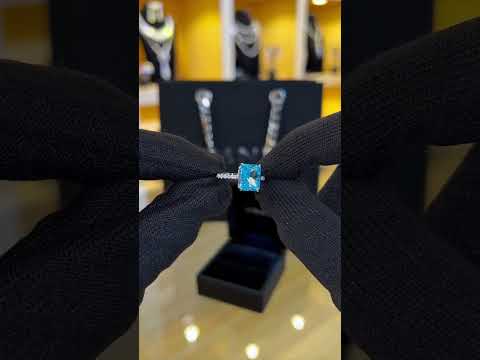 - Set of High Quality 92.5 Radiant Cut Sky Blue Ring