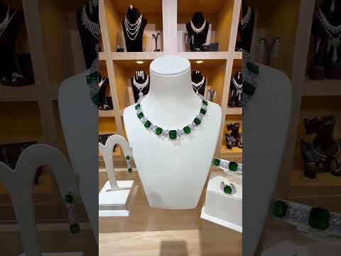 Omnia Amelia Green Bridal Full Set with Emerald and Pear-Cut High-Quality Simulated Diamonds in High-Quality Rhodium Plating