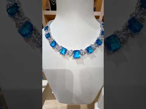 Omnia Amelia Sky Blue Bridal Full Set with Emerald and Pear-Cut High-Quality Simulated Diamonds