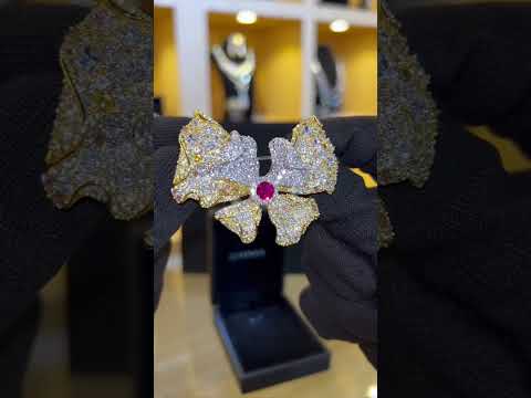 Omnia Aria Brooch In Gold-Plated High-Quality Simulated Diamonds with Ruby Center Stone