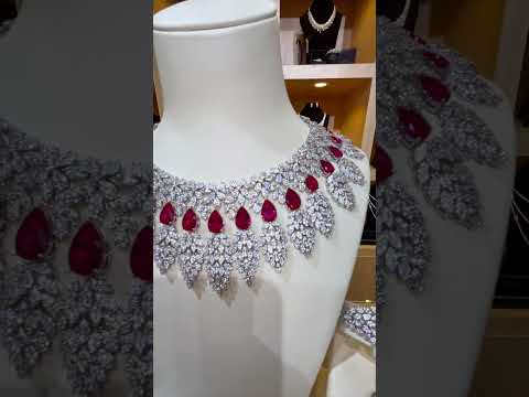 Omnia Asrar Red Bridal Full Set in High Quality Zircon Stone Rhodium Plated