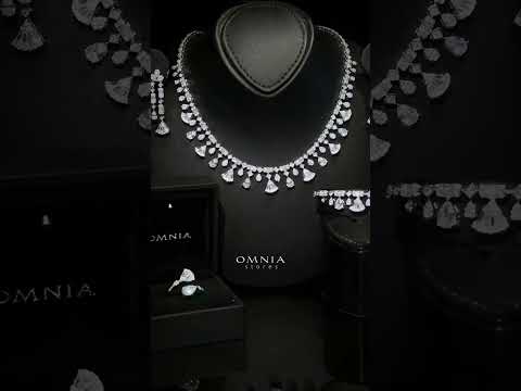 The Omnia Brinley White Bridal Full Set from Omnia Stores is made with high-quality white zircon stones and rhodium plating for a long-lasting shine. This beautiful set includes a necklace, ring, earrings, and bracelet, making it perfect for brides who want a timeless look. Hypoallergenic and tarnish-resistant, this set ensures comfort and elegance throughout your special day. Available now at Omnia Stores.