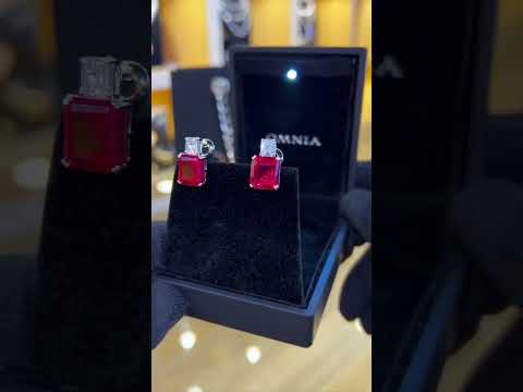 Omnia Candice Red Emerald Cut Clip-On Earrings in 92.5 Silver with High Quality Simulated Diamonds