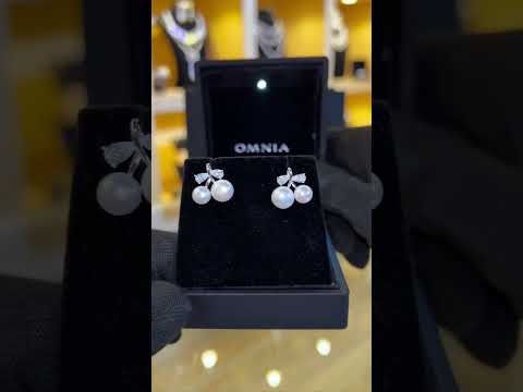 Omnia Chloe Pearl Earrings with Iced Cut Stones in High Quality 92.5 Silver